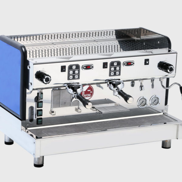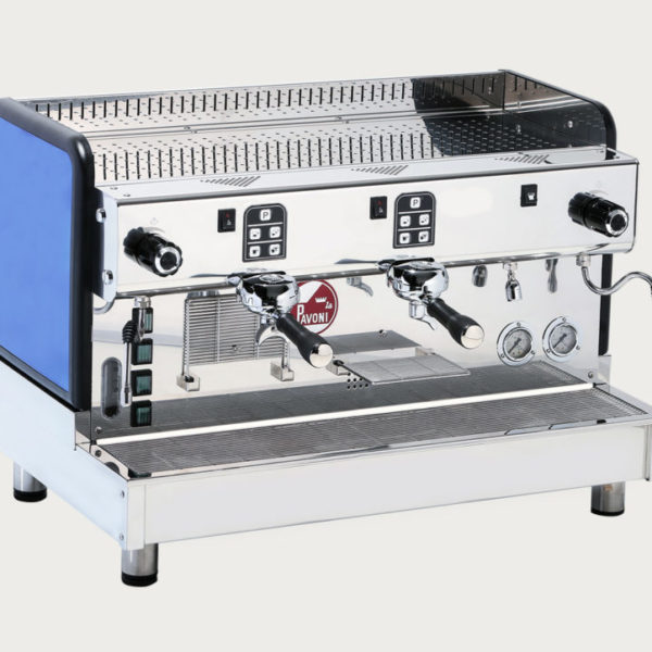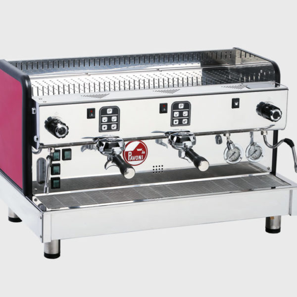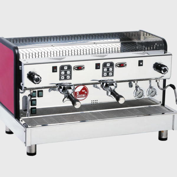 Máquina exprés programable electrónica de dosificación, 2 grupos, con pad de control digital y microprocesador.