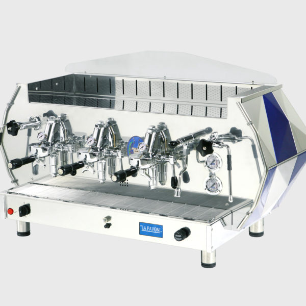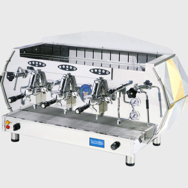 Máquina exprés programable electrónica de dosificación, 3 grupos, con pad de control digital y microprocesador.